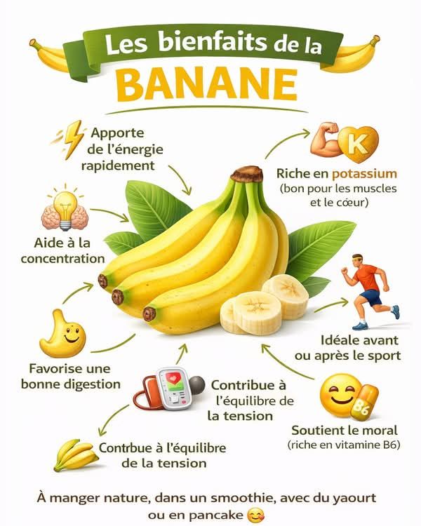 La banane est l’un des fruits les plus consommés au monde, et pour cause : elle est pratique, savoureuse et incroyablement nutritive. Riche en vitamines, minéraux et fibres, elle constitue un allié précieux pour l’énergie, le cœur, les muscles et le bien-être général. Découvrons pourquoi ce fruit mérite une place quotidienne dans votre alimentation.