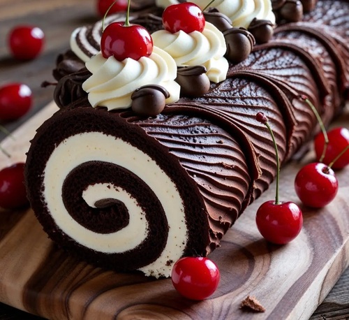 Bûche de Noël au Chocolat et Cerises