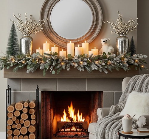 Placez des branches de sapin, de pin ou d’eucalyptus sur le manteau.