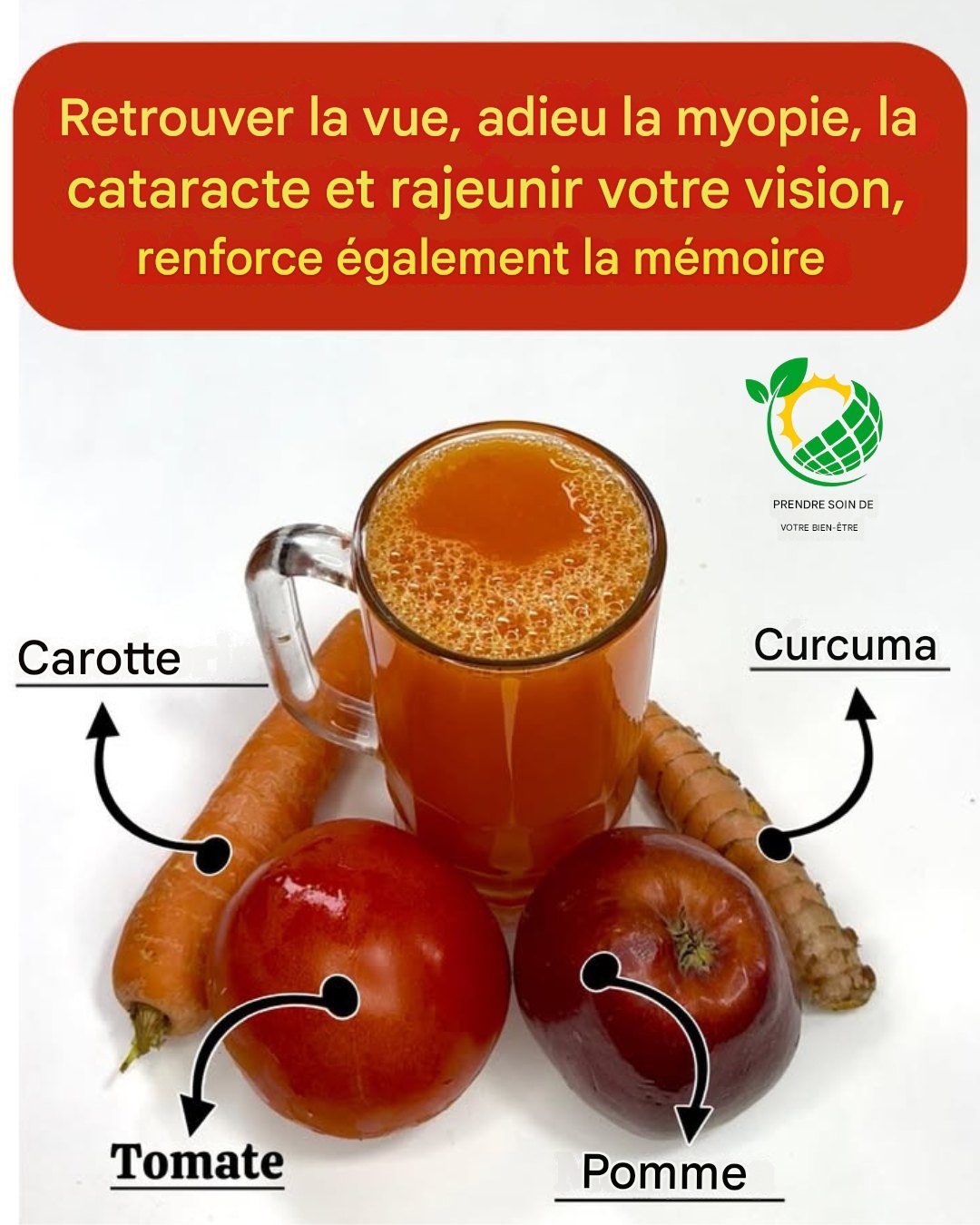 Dans cet article, je te propose une boisson naturelle puissante à base de carotte, pomme, tomate et curcuma.